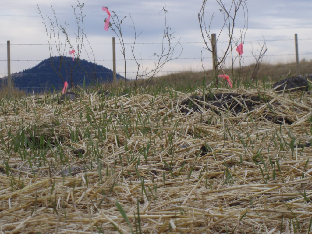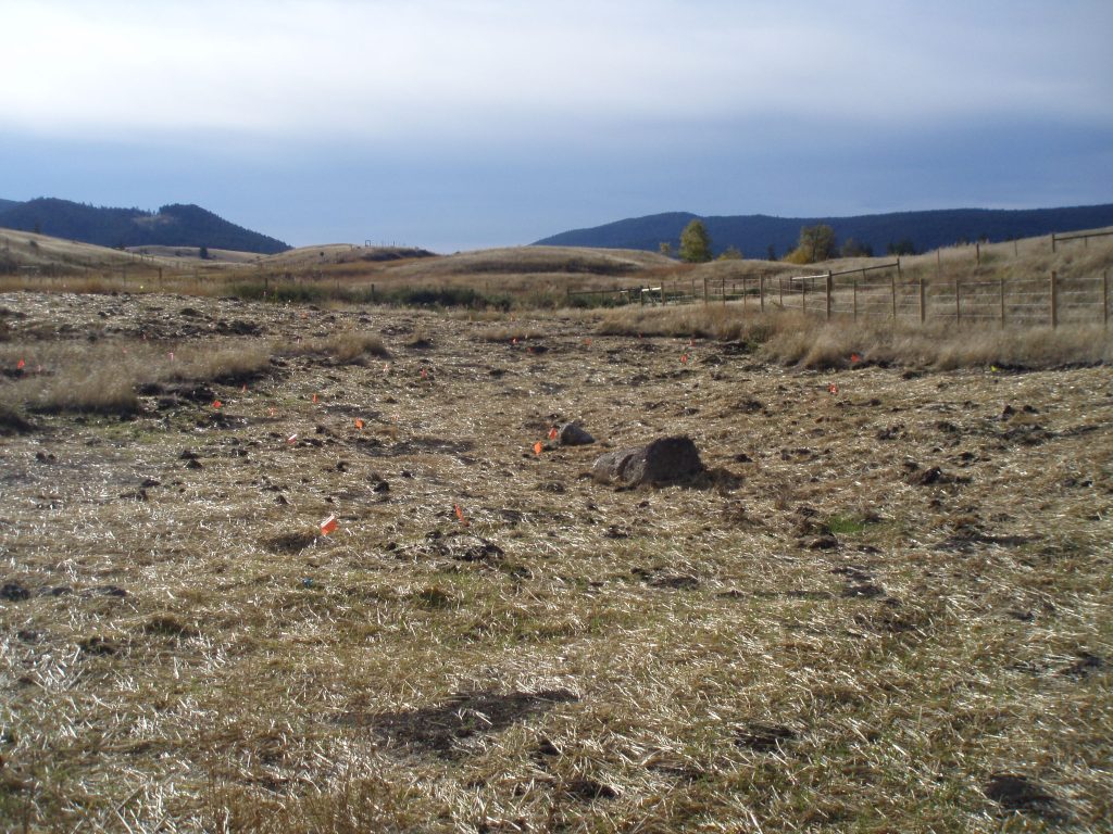 Stud Pasture is also doing well with good plant survival and slightly higher water levels in the 2 deepest holes of the complex. The water is clear and full of insects. I think it will look great in spring when the melt fills all the depressions. There is no recent sign of cattle use in this area, but the original site is a popular bedding ground for a lot of deer, possibly a moose and tons of little critters like mice and voles. A big improvement over what was a compacted mud hole less than 18 months ago. Ernest was impressed with our gathering and spreading of the foxtail barley seed, and speculated that that was perhaps one of the most useful things we did to combat the potential weed problem.