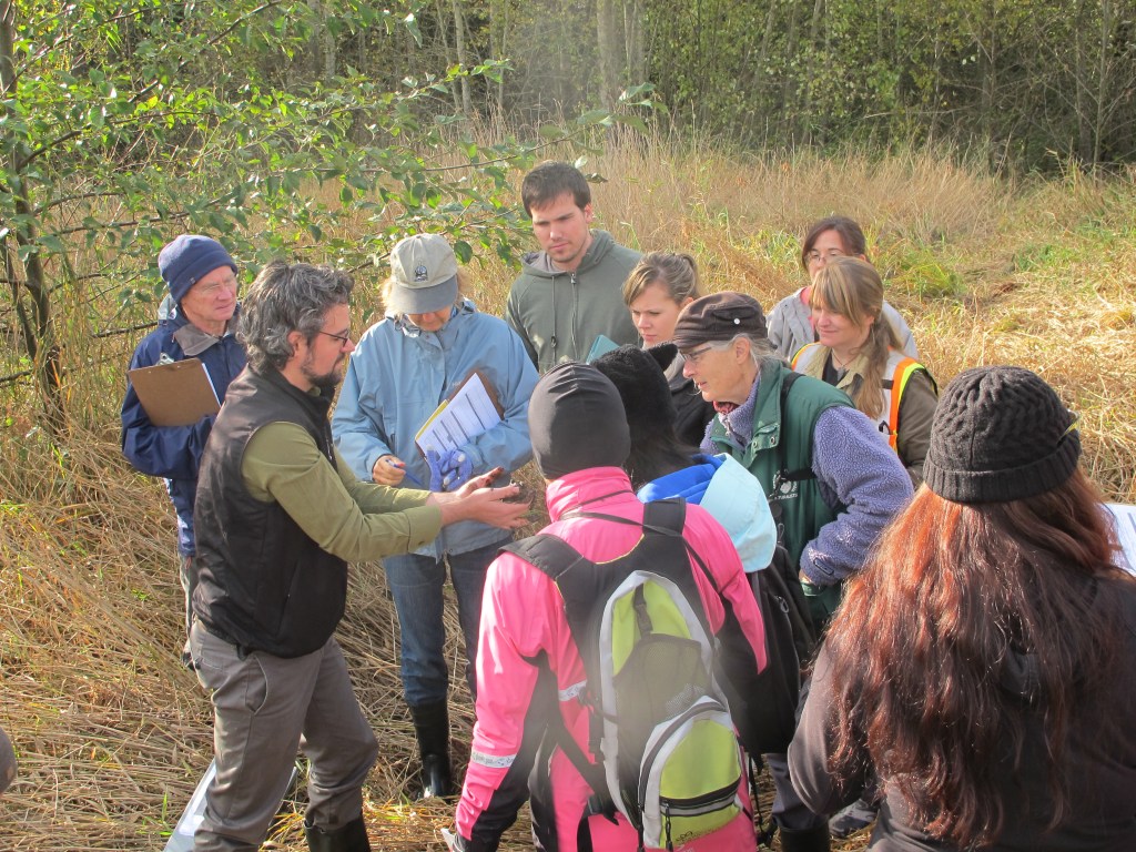 Neil, BCWF Wetlands Education Program Coordinator, started off the morning with a solid introduction to wetlands. Participants learned how wetlands filter water, control floods, and provide habitat to hundreds of wildlife species. To successfully protect or restore a wetland you must be able to identify which of the 5 main types of wetland you are working with. Examining the plant communities, soil type, and presence of water will tell us whether the wetland is a bog, fen, marsh, swamp, and open water; however, there are over 100 sub categories listed in the Wetlands of BC book that Neil suggested as a nice bedtime read.