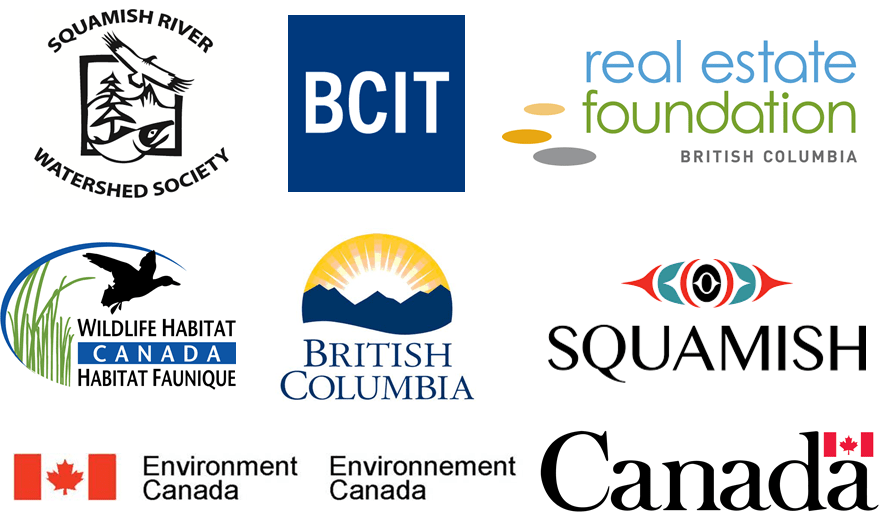 The Real Estate Foundation of BC, Wildlife Habitat Canada, Environment Canada, BC Institute of Technology, Government of BC, the Government of Canada, Squamish River Watershed Society, and the District of Squamish.