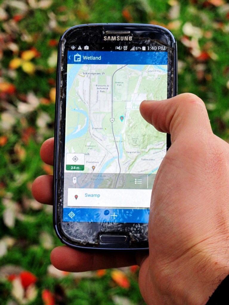 After lunch, the workshop moved into the field portion, where Durand taught participants how to fill out a wetland inventory form. Durand brought participants to the swamps and ephemeral wetlands along Logger’s Creek Nature Trail. Participants followed Durand along with paper forms or on their phones or tablets using the District’s new Collector app. Participants learned how to assess various parameters of the wetlands, including soil texture, vegetation, hydrological properties, and water quality.