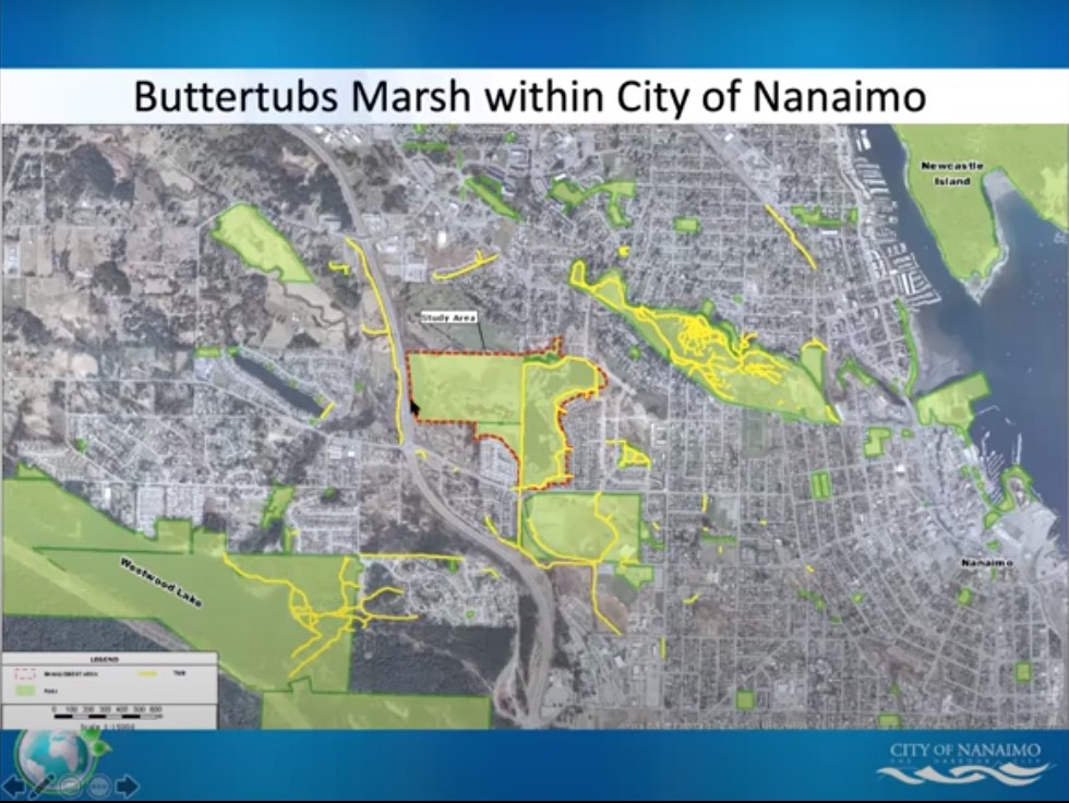 Rob shared the case study of Buttertubs Marsh in Nanaimo, an impacted and modified marsh turned into a conservation management area after the City determined the natural asset value of the land.