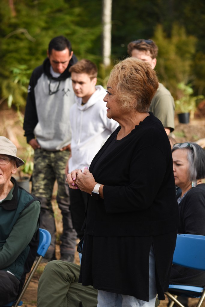 The October planting day began with a ceremony led by June Johnson of the We Wai Kai First Nation. A large cedar and a juvenile crabapple tree were planted to commemorate the event. Following the ceremony, each class participated in an educational session on wetland habitat, led by the BCWF Youth Program. Students then had the opportunity to plant alongside their peers, We Wai Kai Land Guardians, and the Southwest Pod field crew.