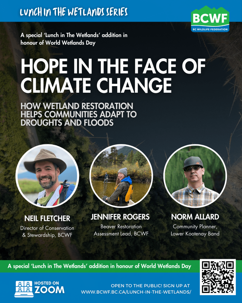 The B.C. Wildlife Federation presents Lunch in the Wetlands Lunch N’ Learn Webinar Series! Join BCWF staff in engaging presentations about wetland related topics from species ID to restoration techniques.