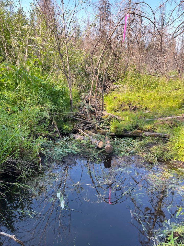 Our aim is for the installed BDAs to slow water velocity, promote sediment aggradation, and limit the potential for worsening channel incision. BDAs will also increase water residence time, supplementing flows during summertime lows. Other restoration actions will include planting deciduous species along the riparian corridor to support natural tree regeneration, increase soil and streambank stability, and potentially act as a food source to encourage future beaver establishment.