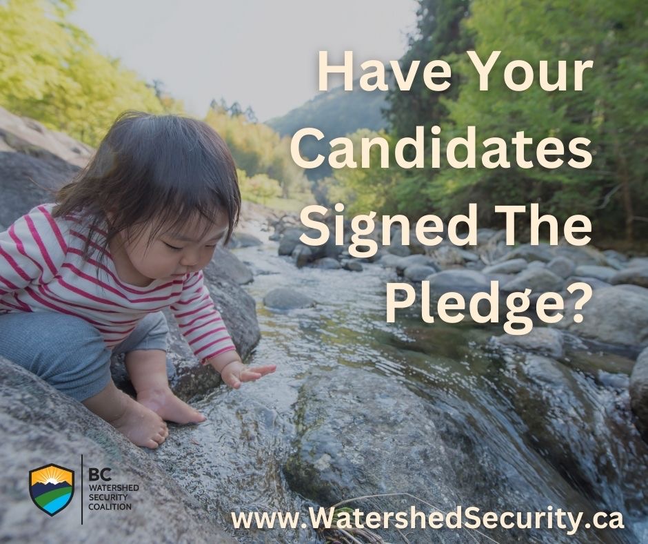 The BC Watershed Security Coalition is asking all candidates in the 2024 BC Election to sign the Watershed Security Pledge as a commitment to invest in the health and well-being of British Columbians and the economic stability of local communities.