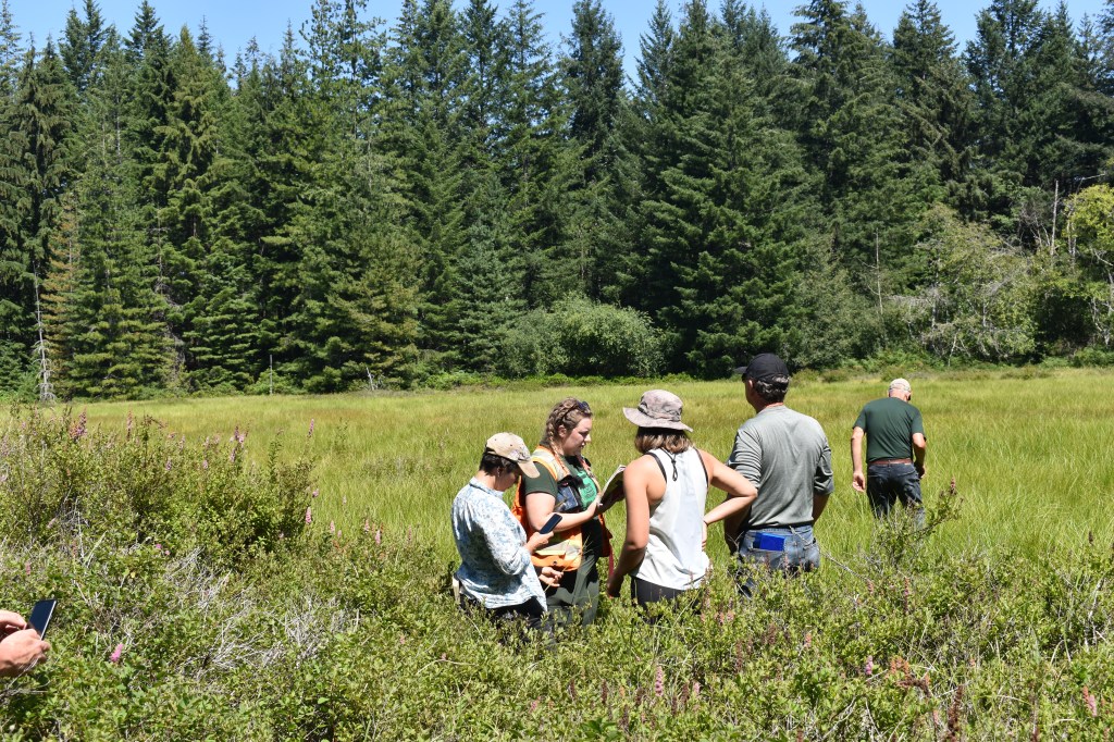 On the following day (June 8th), we met GCA’s Restoration Coordinator, Adam Huggins, who led us on a hike through a property the Galiano Conservancy Association recently acquired after years of fundraising and hard work. Adam pointed out human legacy structures and impacts, as well as areas of current restoration and future restoration potential. At our destination, Great Beaver Swamp, participants applied their newly learned classification skills by examining the wetland’s three essential components: plants, soils, and water.