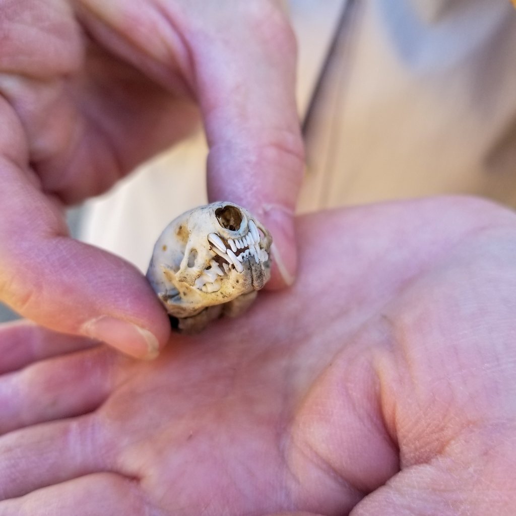 Weasels have a high reproductive rate which is necessary as they also have a high death rate due to predation. This skull was found at the Toles wetland site in Kamloops.