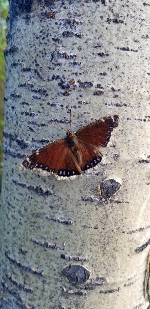Mourning Cloaks (Nymphalis antiopa) are found across Canada and as far north as the tundra. They are one of the few species of butterfly whose range extends into Europe and Asia.