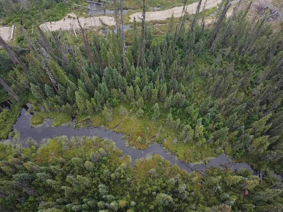 This large-scale hydroelectric project altered entire watersheds, displaced wildlife and Indigenous communities—including the Kwadacha Nation and the Tsay Keh Dene First Nation—and left behind a dense network of access roads, many of which intersect or border wetlands. These changes continue to affect the landscape today.